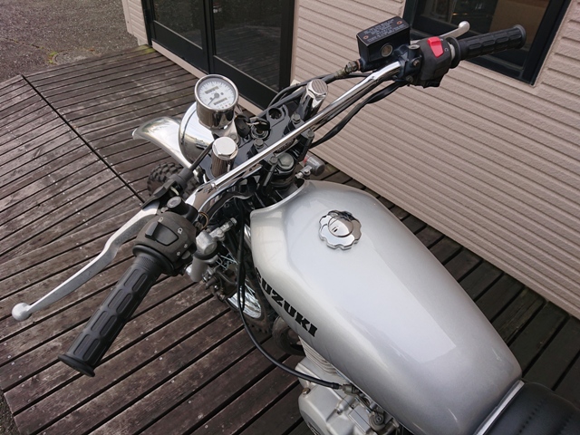 フロント21インチホイールに前後アップフェンダーを装着しオフロード走行も楽に行えるよう車高をリフトアップさせております。タンクは海外製のものを加工して取り付けシートはショート化。一回り大きくなったビッグボーイは250ccクラスとは思えません。ストリートでもオフでもどちらでも目を引くバランスの良さを重視して制作しました。