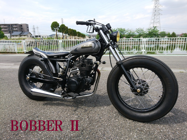 こちらのTW200はボバースタイルカスタムになります。純正オリジナルのフレームをチョップし修正をしてこの形にしております。